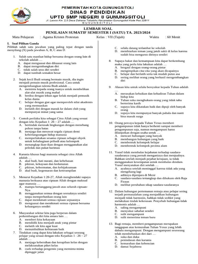 Sumber Download Gratis Soal Agama Kristen Protestan Kelas 3